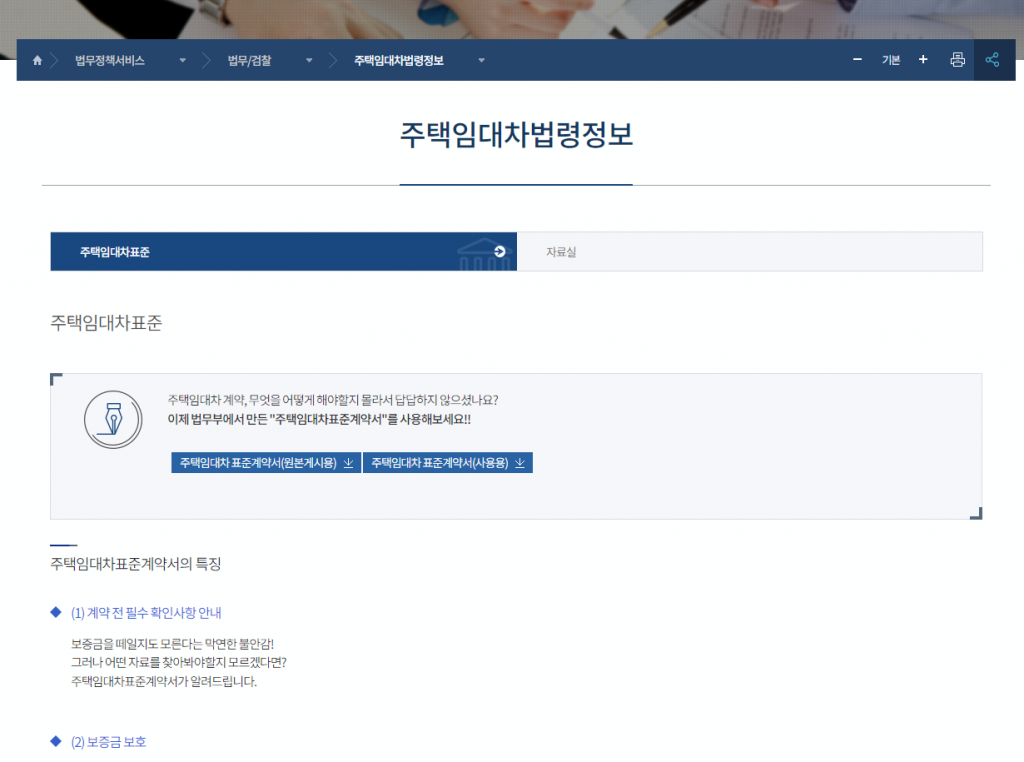법무부 ( https://www.moj.go.kr/moj/314/subview.do ) > 법무정책서비스 > 법무/검찰 > 주택임대차법령정보