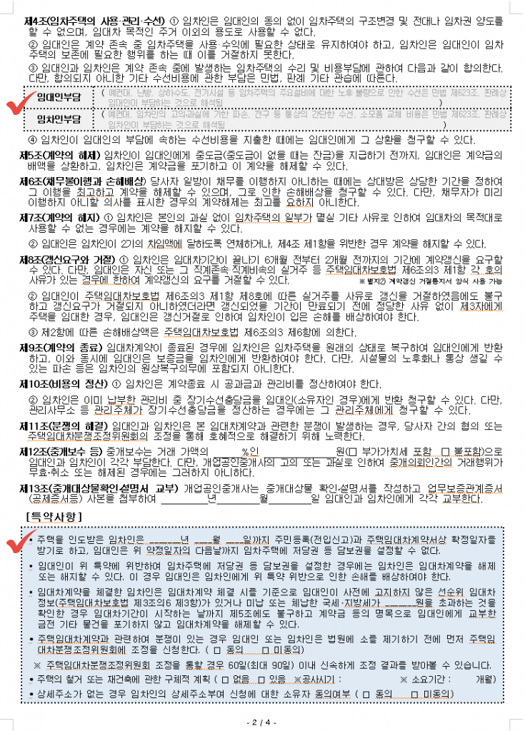 이외에도 임차인 뿐아니라 임대인도 특약사항을 넣을 수 있습니다.