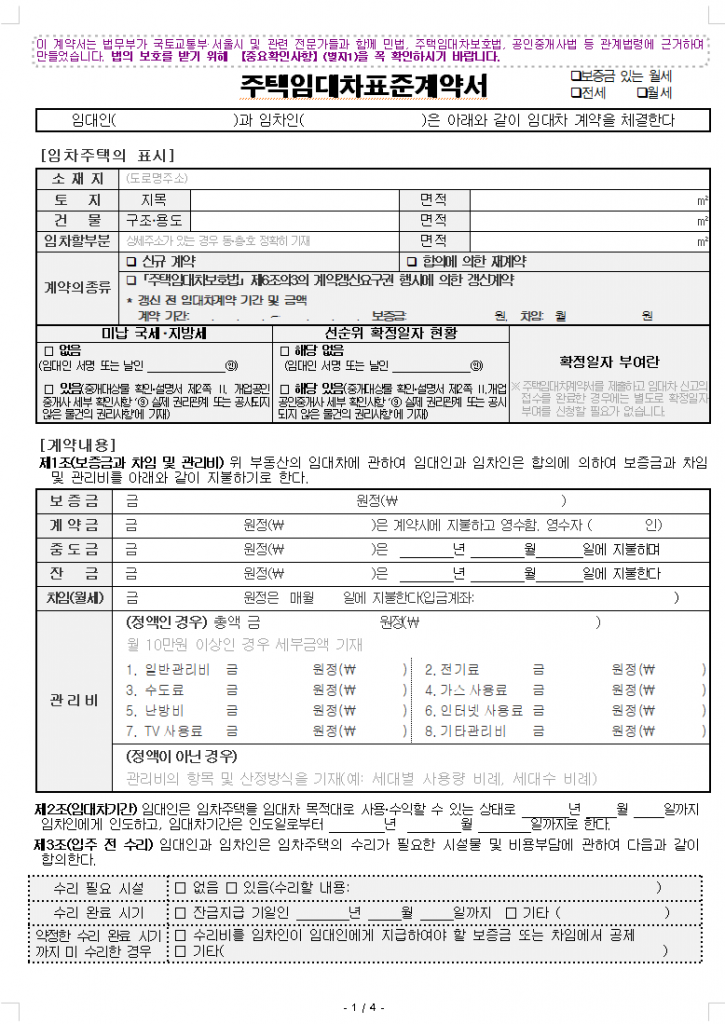 주택임대차표준계약서란?