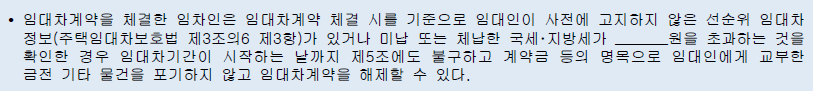임대인은 사전에 말하지 않은 선순위 임대차 정보나, 미납, 체납한 국제, 지방세가 있다면 ,